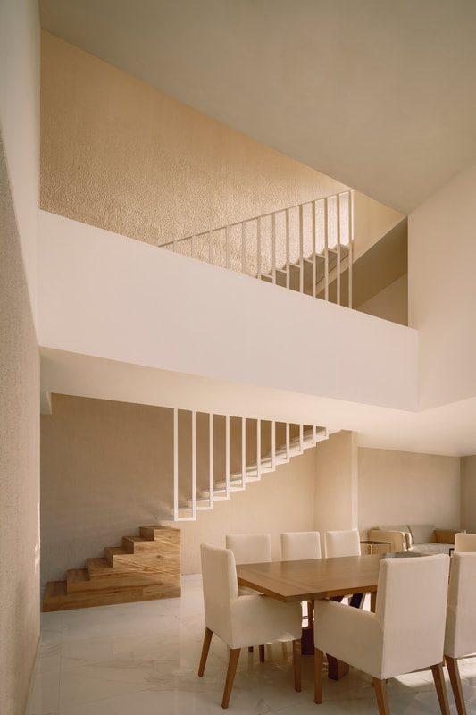 This home complements an urban façade that we have had the opportunity to create over three years. This façade is made up of four projects by the studio. As this is the last one oriented towards the western axis of the central block of the development, we were interested in using a warmer colour scheme and a more enclosed volume than the rest of the houses as an exercise to obtain a different impact on the other three adjoining ones. A project without defined users at the moment of designing, but with a clear objective: «To improve the urban image of the immediate context, inviting the rest of the neighbours to make modest designs». We always kept in mind the financial needs of our clients, the developers. Therefore, we began to implement strategies with homogeneous positions concerning the local and international market, given its location in one of the most attractive areas in Mexico for real estate investment in recent years. According to our perspective, this proposal acts as a blank canvas ready to be tailored. A design exercise which has allowed us to reinterpret the same architectural programme four times, endorsing that in architecture: "Changing the order of factors does change the product". A quiet façade that only shows you a little of what is going on inside, construction techniques dominated by local labour, a social area without programmatic boundaries adapting to the needs of the people who live there, concatenation of double heights and the constant promotion of coexistence among the inhabitants. From the beginning of the process, we had in mind a quote by Alejandro de la Sota: "give rabbit by cat", to give more than the market expected. To be simple, logical and pragmatic in all our decisions, displaying the architectural plans balanced from their reading. Casa Verónica is warmth, intimacy and coexistence, a timeless structure that seeks to be customized, a core of experiences hinged to a water feature diluting the boundaries between indoor and outdoor. Creating well-defined domestic dynamic spaces but agile to the changes that future owners may wish to apply. |